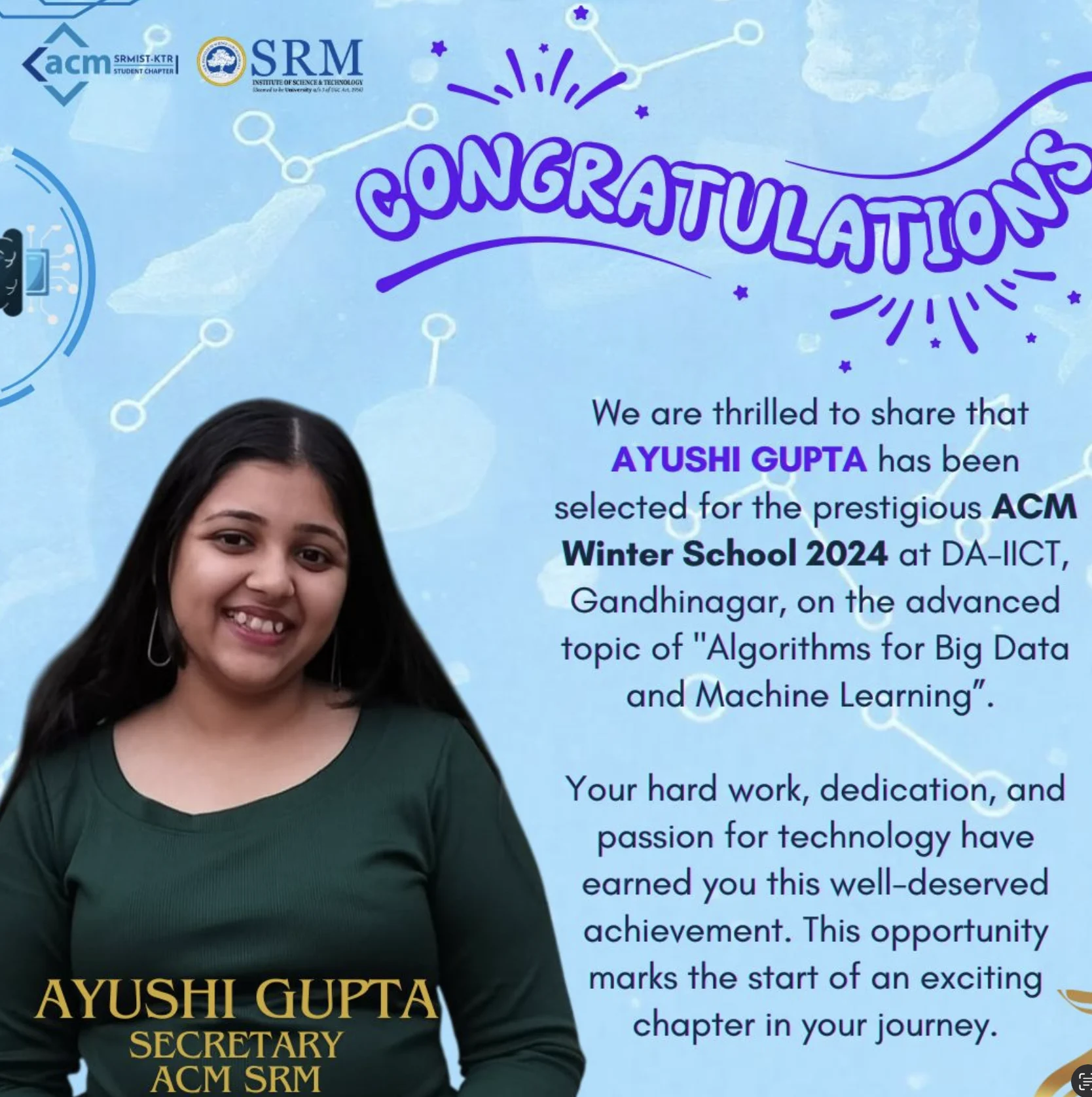 Multiple core members selected to participate in the highly competitive ACM India Winter Schools, engaging in advanced algorithmic and systems research.
